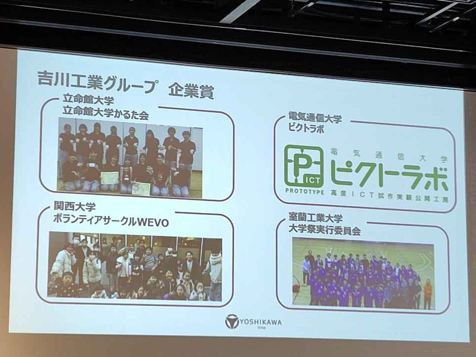 この度は吉川工業グループ様より企業賞をいただきました。誠にありがとうございます。